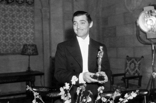 ? Кларк Гейбл со статуэткой “Оскар”Капризы артиста не понравились боссам киностудии, на которую работал Кларк, и они решили наказать восходящую звезду. Гейбла обязали играть в паре с Клодетт Колбер в романтической комедии «Это случилось однажды ночью». Лента снималась на маленькой, неизвестной студии и не сулила Кларку большого гонорара. Время показало, что Гейбл противился зря. Фильм принес ему статуэтку кинопремии «Оскар», известность и возможность сменить амплуа.