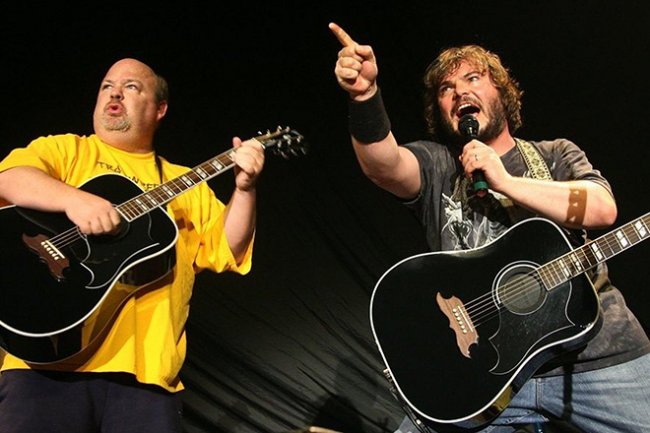 ? Джек Блэк в группе «Tenacious D»Этот невообразимый ансамбль пользуется популярностью и у знаменитостей. К примеру, поклонником «Tenacious D» является актер Джон Кьюсак. Именно он пригласил Джека сниматься в фильме «Фанатик». Сам Джон сыграл в картине заглавную роль.