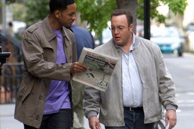 ? Уилл Смит и Кевин Джеймс в фильме «Правила съема»Кассовые сборы комедийной киноленты «Правила съема» составили $177 млн. Прежде всего благодаря исполнителю главной роли Уиллу Смиту. Но наибольший восторг у зрителей вызвали сцены с участием Альберта Бреннамена – героя Джеймса. Роль прославила актёра, а получил он ее благодаря «Королю Квинса». На актера обратил внимание Смит и порекомендовал режиссеру взять Джеймса на роль Бреннамена.