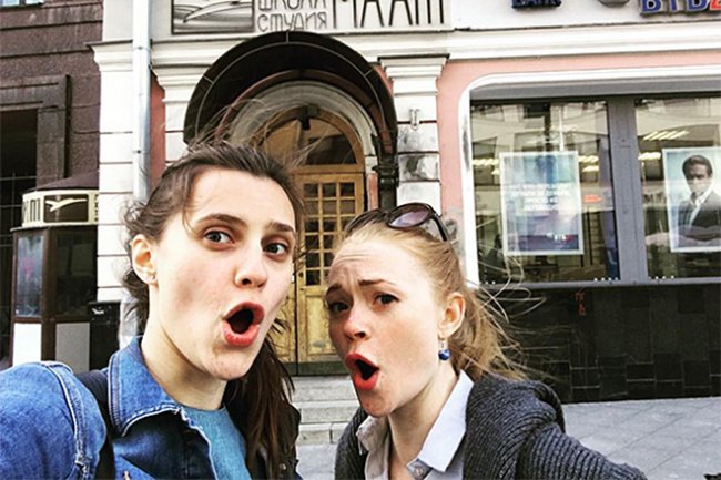 ? Александра Кузенкина с однокурсницей возле Школы-студии МХАТ