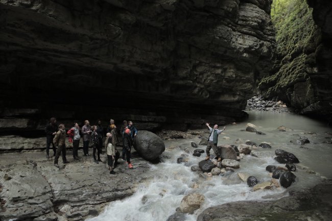 У нас было много разных локаций, первые два месяца, например, мы жили высоко в горах, в пансионате. Он находился в очень красивом месте, на высоте около 1600 метров, горы, лес, озёра, разреженный воздух, к которому нужно привыкнуть, живые источники с минеральной водой, которые, если что, обещали вылечить от всех болезней (но это не точно). Разгуливающие с колокольчиками на шее коровы, которые будят тебя по утрам и на которых можно нечаянно натолкнуться вечером, если не взял с собой фонарик. Горные козлы, лошади, куры также были нашими соседями. Условия были простые, без излишеств, но не скажу, что тяжелые. Я за свою жизнь жила в очень разных условиях, поэтому напугать меня подобного рода трудностями на съемочной площадке не просто.