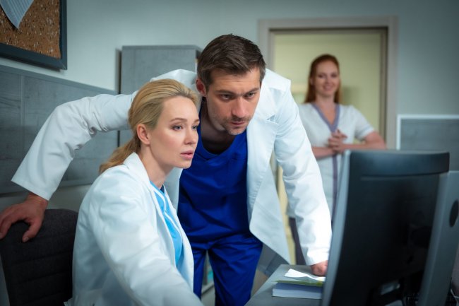Да, у нас два новых консультанта: Александра, которая консультирует нас по ожогам, внешним травмам и переломам, и Роман – он ведет все медицинские истории, которые касаются внутренних органов, сосудов, головного мозга и так далее. Погружаться в это было очень любопытно, каждая операция не была похожа на предыдущую, и все переживали, чтобы было правдиво. Консультанты нам много подсказывали, в том числе и про хирургические инструменты. Еще до начала съемок мы изучали весь инструментарий, думали, как это художественно оправдывать, как лучше снимать, как встроить в драматургию… Рома шутил: «Не понимаю, почему мы не можем резать актеров?» Это и был самый сложный момент в подготовке съемок: совместить художественное видение и реальность. Когда присоединились актеры, мы уже понимали, как всё будем делать, оставалось только научить их. Для них проводились мастер-классы, чтобы они понимали, как правильно держать медицинские инструменты, – все-таки наши врачи больше работают руками, чем с бумагами в кабинетах. Также актеры изучали терминологию, виды операций, очень глубоко в эту тему погружались. Чтобы увести наших врачей от бумажной работы, мы создали электронную регистратуру, все в планшетах – снимки, истории болезни, диагнозы и так далее, чтобы не таскать с собой бумаги. Это дало нашим героям свободу, появилось время больше взаимодействовать друг с другом, акцентировать внимание на персонаже, на конфликтах и операциях. Операция для нас всегда стресс: надо все идеально выстроить, вплоть до того, где стоят герои вокруг операционного стола.
