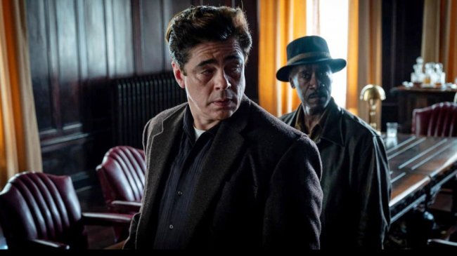 «Без резких движений» — снова формалистская мозаика. Детройт, 1955, трое жуликов разных национальностей (Бенисио Дель Торо