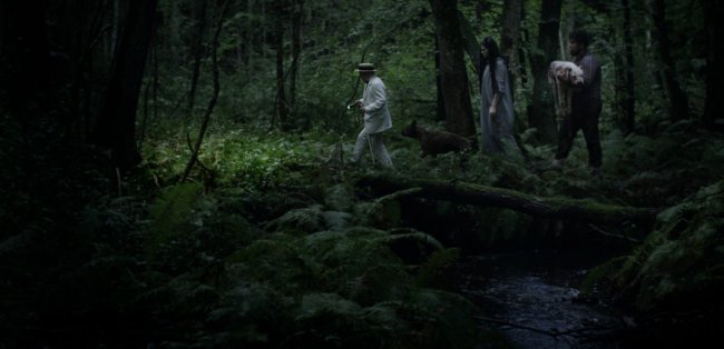 начинается с кадров сумрачного леса, по которому бредут трое: низкорослый дядечка в костюмчике денди, кудрявый амбал с полотен о деревенской жизни, несущий мертвую белую собаку, и сосредоточенная девушка со смольной прической плакучей ивы, еще и ведущая на поводке питбуля. «Умер мой петушок, дружок мой», — поет дядечка. — «Коко-ди, коко-да». На припеве его заедает, монтаж начинает копировать вальс заевшей пластинки. В стык идет контрастно пестрый рисунок на музыкальной шкатулке, где эти же трое изображены, но по-детски жизнерадостно. В шведской страшной сказке для родителей «Коко-ди Коко-да» лес играет ту же юнгианскую роль, что и, например, в триеровском «Антихристе» (2009), где бессознательное сопряжено с телесным. Дополняет сходство и то, что история семьи тут подобна петле бесконечной скорби, но причины такого сюжетосложения утаим ради избежания спойлеров.