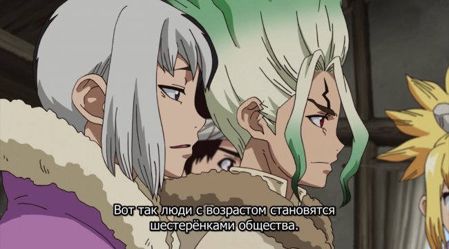 Тем не менее «Доктор Стоун» — в первую очередь увлекательная история не только дружбы, но и технического прогресса: от каменных изделий и огня до колеса, железа и даже пороха. В голове у Сэнку четко расписан путь, который человеческая цивилизация прошла за миллионы лет, и он планирует повторить если не пятилетку в три дня, то эти века поисков — за несколько десятилетий.