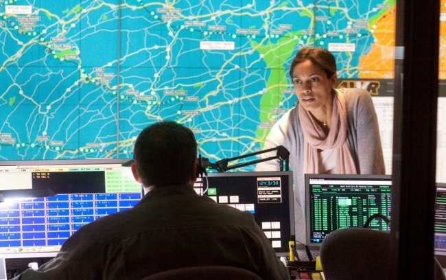 ) выскочил на секундочку из поезда – перевести стрелку. Споткнулся, разумеется, – километровый состав, нагруженный взрывоопасными веществами, умчался самостоятельно рассекать по рельсам Пенсильвании. На пути у него пара опасных поворотов, состав, груженный первоклассниками и конечная остановка в городе со стотысячным населением. Только-только прибежавшая на работу диспетчерша (Росарио Доусон