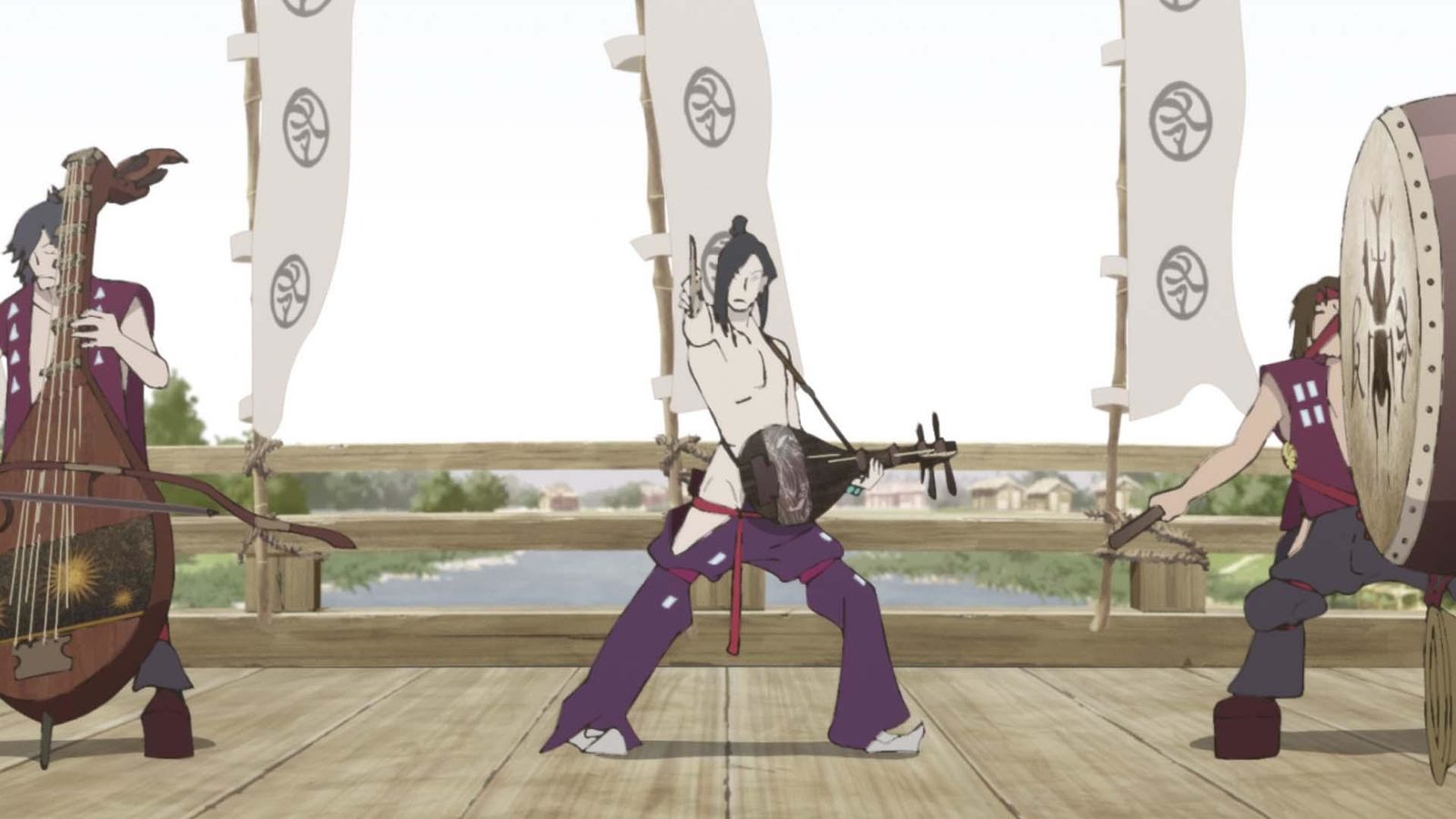 Итак, закадровый рассказчик, сопровождающий повествование игрой на биве, приглашает перенестись на 600 лет назад — в эпоху сёгуната, когда Японией фактически правил Асикага Ёсимицу. При нем произошло немало перемен во внешней и внутренней политике страны (например, была восстановлена торговля с Китаем и усилилось распространение буддизма), но самое главное — он способствовал развитию искусств. Тут-то на авансцену и вырываются незрячий музыкант Томона (Мирай Морияма
