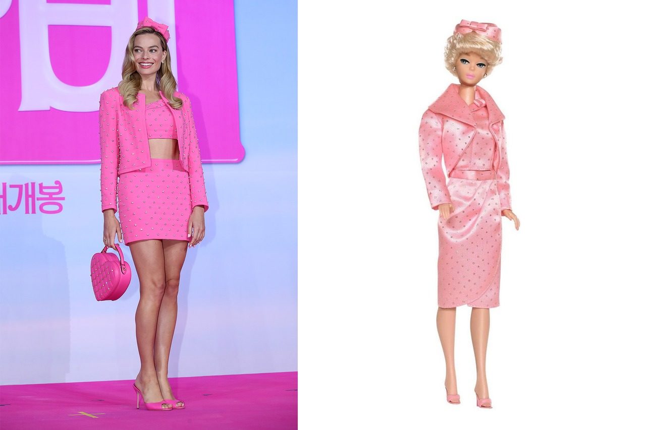 На премьере в Сеуле Марго пришла в образе Деловой Барби, Не Забывающей Веселиться. Модель 1985 года «Day-to-night» можно было бы перевести как «С корабля на бал». Строившая карьеру Барби была оснащена скромным дневным костюмом (к которому прилагались федора, портфель и главный символ серьёзности - калькулятор) и легкомысленным вечерним комплектом из блестящего топа и пышной юбки. Эти костюмы для Марго воссоздал модный дом Versace.