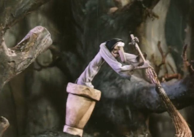 , где славянская нечисть собирается в домишке на курьих ножках в ожидании праздника и заморского гостя. В исполнении Гердта Баба-яга выступает матриархом всей нечисти, властной бабулей советской семьи. Клара Румянова