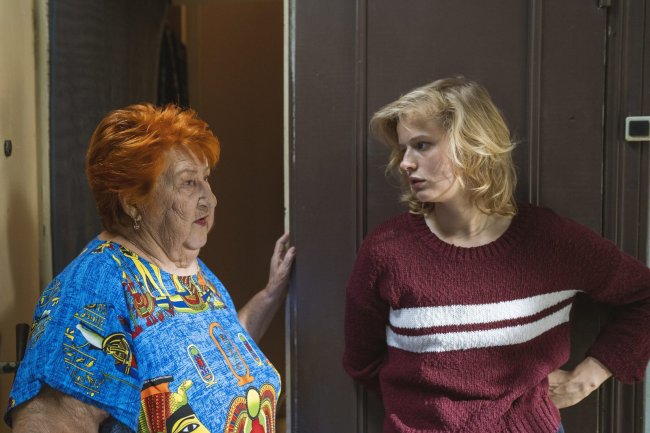 , который играет Андрея — парня главной героини, не актер, это еще один мой однокурсник с режиссуры, наш друг с моим соавтором. И мы писали персонажа с него: брали какие-то его черты и представляли, что бы он сделал дальше. Он был нашим прототипом, мы всегда подхихикивали над тем, какой он самобытный — весь такой педантичный, идеальный. И когда мы стали искать актера на эту роль, то поняли, что из тех, кто к нам приходит пробоваться, никто не чувствует эту грань, не может передать эту смесь интеллигентности и юмора, петербургского снобизма и светскости — всё не то. Так что мы решили позвать самого Сережу — и он прекрасно справился. Проделал огромную работу и над ролью, и над собой, и у него было желание это сыграть — и, кажется, получилось сделать из него киноактера, надеюсь, что его заметят и будут еще звать в кино. Еще у меня играет Супербуся — это бабушка-блогер, которая вообще никогда не появлялась в кино. И это была моя авантюра: я поняла, что именно эта бабушка мне нужна. Хотя я искала также актрису профессиональную, но никто не мог сделать такую суровую, даже злобную бабуську, которая четко и жестко общается — и которая бы не играла, а реально такой и была. Мы ее привезли из Ейска, и это было, конечно, испытанием и для нее, и для меня. Она учила текст, но со своими интонациями, и мне приходилось с этим бороться на площадке. Она не могла делать дубли, ей становилось плохо — есть вообще сцена, где она лежит в воде, и это было очень сложно технически. В общем, она героиня. И я героиня! Вся группа сидела, поджав хвосты, когда были её сцены: сможет или не сможет, уйдет или не уйдет? Дебют в кино в 80 лет — это как полет в космос.