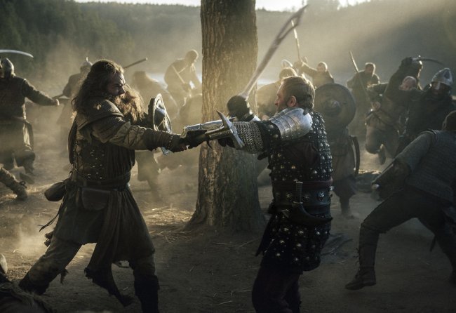 Вслед за отечественным полотном «Сердце Пармы» компания «Централ Партнершип» выпустила другой исторический эпос — «Средневековье», где борьба за землю и власть раздирает не будущие территории Российской Империи, а знаменует начало конца для империи Священной Римской. После смерти Карла IV, в конце XIV — самом начале XV веков Европа погружается в хаос и междоусобицу, к которым, естественно, прилагаются голод, вoйны и чума. Дошло даже до того, что было выбрано сразу два папы — в Риме и во французском Авиньоне. Старший сын Карла IV Вацлав (Карел Роден ) погряз в долгах и врагах — далеко не все хотят видеть на престоле слабого короля. Его сводный брат Сигизмунд (Мэттью Гуд ) — наследник куда более находчивый и хитрый, хотя старшего родственника вроде как поддерживает: империя большая, королевств на всех хватит. Превращение Вацлава из наследников в императоры должен финансировать пан Рожмберк (Тиль Швайгер ), но его королевское вымогательство уже порядком достало, да и других забот полон рот: бедные крестьяне что-то совсем не хотят платить в очередной раз повысившиеся сборы, а у Рожмберка на носу свадьба с красавицей Катериной (Софи Лоу ), по совместительству — племянницей французского короля. Смотреть онлайн «Cредневековье» Петра Якла Без подковерных игр, конечно, борьба за власть не обходится. И вот уже верный вельможа Вацлава — пан Бореш (Майкл Кейн ) — придумывает хитроумный план: заполучить деньги Рожмберка, похитив его невесту. Сам Бореш, конечно, таким не занимается, но у него есть знакомые наемники под предводительством Яна Жижки (Бен Фостер ), которые за несколько грошей готовы на любые провокации. Понятно, что похищение оказывается далеко не самой простой операцией, в ходе которой приходится иметь дело и с будущими королями, и крестьянами, и любовью, и предательствами. Но самое главное, если судить по фильму «Средневековье», именно из этого произрастает новый национальный герой — великий чешский полководец Ян Жижка, по легендам не проигравший ни одной битвы. «Средневековье» — самый дорогой проект в истории чешского кино (бюджет оценивается в $20 миллионов). Снял его спортсмен, актер и режиссер Петр Якл , несколько лет подряд вынашивавший замысел байопика Яна Жижки и за свою карьеру обросший связями в большом европейском кино (он, например, играл в сериале «Борджиа»). Чтобы не навлечь на себя обвинения в непочтении к истории, что случается всегда и во всех странах, если берешься за подобные проекты, при написании сценария Якл решил сосредоточиться на пути становления Жижки, о котором каких-то доподлинных фактов особо и нет. Поэтому неудивительно, что для эпоса в формате «отрочество лидера» выбор пал на давно всем знакомый сюжет о «похищении прекрасной Елены» (влияние «Трои» Вольфганга Петерсена на чешского постановщика очевидно). От эстетизации мужского тела, популярной в середине «нулевых», Петр Якл, правда, отказался, предпочтя современные сериальные веяния в духе «Игры престолов» и «Ведьмака». В «Средневековье» все-таки тоже темные во всех смыслах времена, озаряемые лишь скромным светлым платьем Катерины — невольной разменной монеты в этих не самых продуманных интригах финансового и политического толка. Основной упор Петер Якл делает, конечно, на звездный — по меркам чешского кино и нынешнего российского кинопроката — 