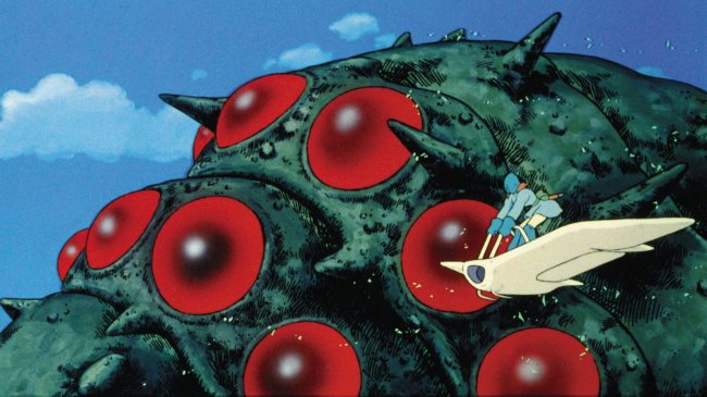 Постапокалиптическую одиссею боевитой принцессы, чей народ выживает в борьбе с природой, мутировавшей после ядерной войны, часто принимают за первый проект Ghibli — и студия даже задним числом включила её в сборник своих работ. Однако в экранизации манги самого Миядзаки — бумажная «Навсикая» отличается — уже явлено будущее величие: пробивная героиня, формат странствия, скрупулезная анимация (боевые сцены с Титаном рисовал Хидэаки Анно