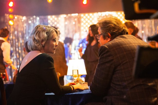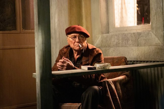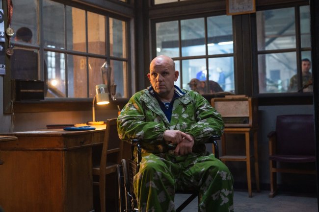 здесь очень уж глаза накрашены, даже как-то зловеще нижние веки подчеркнули. На фоне лысой головы особенно заметно. Перестарались гримеры. Параллельно смотрю «Тень Чикатило
