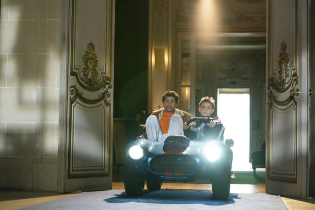Повторяющая многие мизансцены и даже жесты, «Новая игрушка» все же не точный ремейк фильма великого Вебера, а новый взгляд на те же самые темы, не растерявшие актуальности поныне. В фокусе все то же детское одиночество, социальное неравенство, усугубленное межнациональными вопросами, и дилемма: все ли проблемы можно решить с помощью денег. Для нового поколения зрителей авторы придумывают как другие обстоятельства жизни героев, так и обновленный декор. Например, для капиталиста больше не актуальны символы роскоши 1970-х — бассейн в саду и богатый дом, — нынче этим никого не удивишь. Поэтому герой Отёя владеет огромной загородной усадьбой с вертолетной площадкой, полями для гольфа, а во дворце у него есть кинозал, музыкальная гостиная и, скорее всего, комната для грязи. Чтобы придать его материальному миру оттенок вульгарности и бесполезности, Этьена сделали почитателем высокой французской кухни и коллекционером современного искусства: в одном зале из стены торчит зад зебры, а рядом располагается на постаменте писуар (инcталляция стоит за два миллиона евро). У наследника всего в изобилии: помимо маленькой машины (почти такой же, как в старом фильме), чтобы ездить по дому и выписывать штраф прислуге, есть несколько огромных комнат. Одна — с игровыми автоматами, вторая — с настольными играми, а интерактивная спальня с летающей кроватью при желании превращается в элегантный планетарий по голосовой команде. Пацан, разумеется, блогер, ведет канал про астрофизику, но подписчики почему-то над ним смеются — и вообще у него нет друзей.