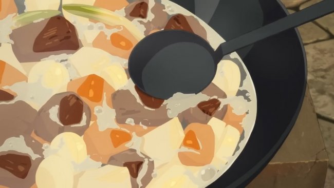 Ворлдбилдинг — пожалуй, сильнейшая сторона манги и аниме, влияющая в том числе на драматургию. Здесь тоже всего в достатке: и комичных сценок, и гиковской поверки жанровых тропов принципами рационального мышления (тм), и трагических предысторий, и бытовых мелочей, которые обычно остаются за кадром (собственно, приготовление монстров), и жутких тайн, позволяющих сюжету продвигаться вглубь — подземелья и психологии героев.