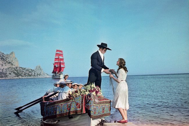 сыграла будто сошедших со страниц книги с иллюстрациями капитана Грея и Ассоль. Она — девушка из рыбацкой деревушки, которой предсказали принца на корабле с алыми парусами. Он — капитан парусного судна, влюбившийся с первого взгляда, услышавший о ее мечте и купивший сотни метров красного шелка, чтобы завоевать свою единственную. Ни убавить, ни прибавить — идеальная история любви, не способная утратить свою актуальность и сегодня, ведь поступки говорят громче любых слов.
