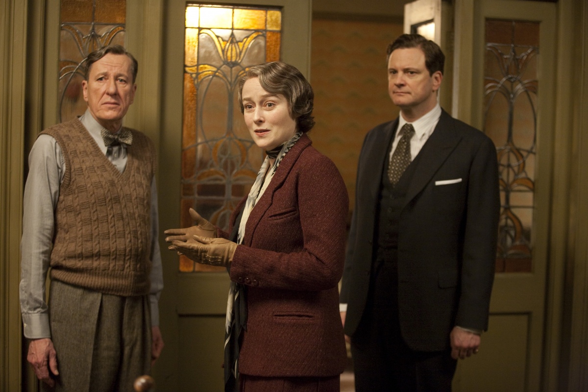 Почти незамеченными проходят и важнейшие исторические события: тема войны с Германией появляется только ближе в финалу, да и то только в виде пары упоминаний имени герра Гитлера и нескольких кадрах хроники, после просмотра которых герой Фёрта заявляет: «О чём этот человек говорит не знаю, но говорит он хорошо», что опять возвращает картину к теме логопатии. Отказавшись от заманчивой идеи показать эпоху через призму личности, авторы концентрируются на внутренних переживаниях героев и становлении символа. Фёрт играет очень сложного персонажа с бесконечным количеством комплексов из детства, страхом отца, старшего брата, сильной неуверенностью в себе и боязнью ответственности. Но, кажется, он не может одновременно выражать такую гамму эмоций, и проблески хорошей актёрской игры появляются только в тех случаях, где он ругается матом, чему посвящена одна гениальная сцена, где многократно звучат слова fuck, shit, ass, а после Фёрт крутится вокруг своей оси.