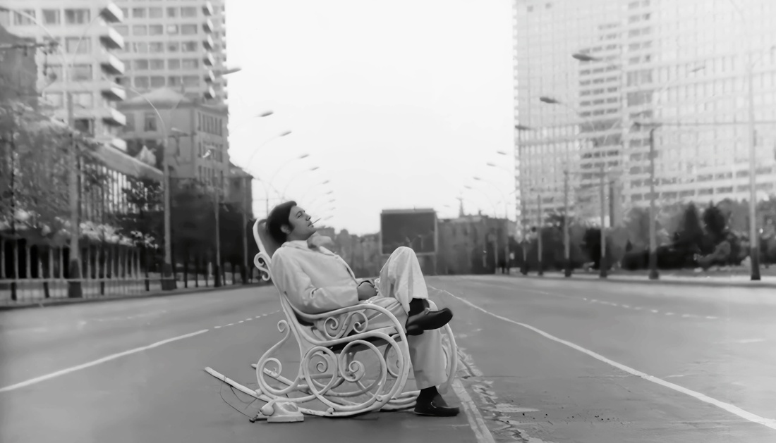 . Картина для него была материалом новым. Мы с ним много экспериментировали. Почти вся картина снята не на 24 кадра, а на 23. Этого никто не видит, но это всё-таки вносит дополнительную механистичность. Вообще, эту картину можно было решать по-разному. Я имею в виду пространство жизни: что за город, где он живет? Вариант первый: типовые новостройки Новоясенево, Теплого Стана, дома одинаковые, безликая архитектура, и он как человек где-то там потерялся.