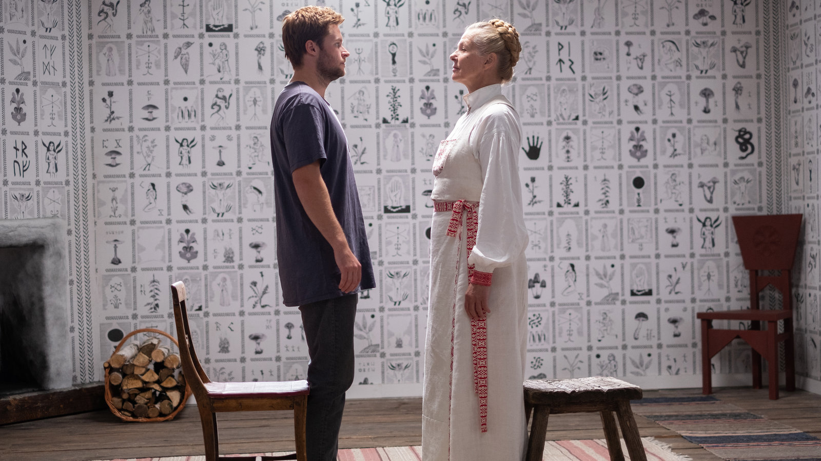 Дальше начинаются сцены из общинной жизни: американцы пялятся на шведских женщин (Марк в исполнении Уилла Поултера явно ехал за секс-туризмом), покуривают местные травы и пьют сомнительные отвары, а потом и вовсе оказываются втянуты в странноватые ритуалы. Праздник солнцестояния подразумевает некоторые жертвы; для начала с обрыва спрыгивают двое стариков. Хорга считают, что человеку отведено четыре цикла по 18 лет, где каждый связан с временем года: до 18 лет — юность, до 36 — путешествия и поиски себя, до 54 — время труда, до 72 — пора наставничества. Далее — смерть без хворей. Американских хипстеров и интеллектуалов эта ситуация одновременно пугает и притягивает: ужасаясь этой славной традиции и безумно ей интересуясь (Кристиан наконец находит тему для диссертации), они и не замечают, как теряет связь с комфортом современной цивилизации. Пропадает мобильная связь, чувство границ, а потом и реальности.