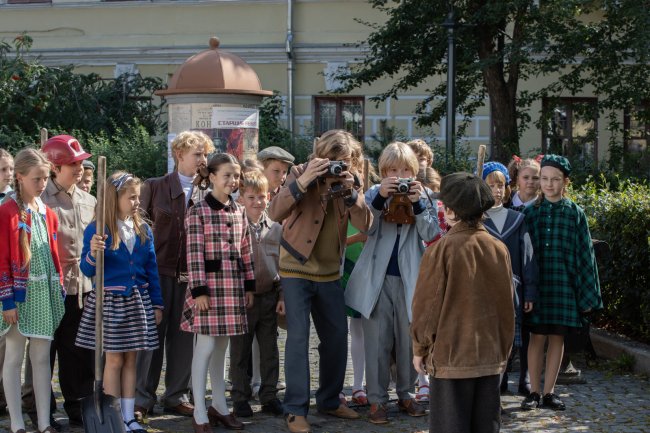 . Изображение самое что ни на есть советское, ламповое, с преобладанием теплых и светлых тонов. Так снимали в конце 1970-х. Есть и одна интересная визуальная находка: панорамные виды старой Москвы, сделанные, по всей видимости, из обработанной старой хроники. Технически они придают работе основательности, солидности, но не достоверности. Всё же это материя памяти — несуществующая реальность, где пятиклассники говорят высокопарными фразами, дарят грустным незнакомцам самое вкусное в мире мороженое, а все проблемы решают сообща, преимущественно на классном собрании.