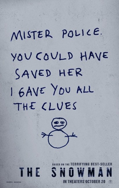 Два новых тизер-постера детективного триллера «Снеговик», снятого по одноименному роману Ю Несбё. В актерском составе значатся Майкл Фассбендер, Ребекка Фергюсон, Вэл Килмер, Шарлотта Генсбур, Дж.К. Симмонс, Хлои Севиньи и Тоби Джонс.