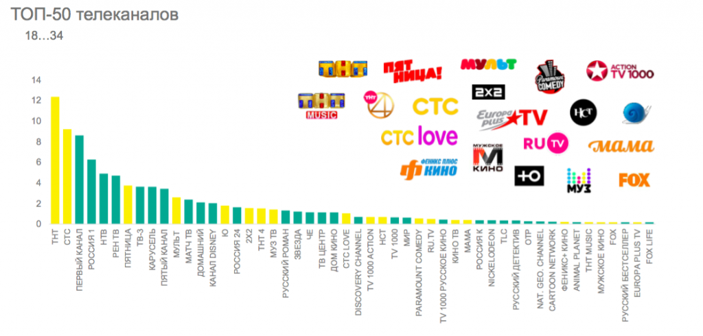 Для возрастной группы 18-34 лет музыкальные и развлекательные каналы — аффинитивны.