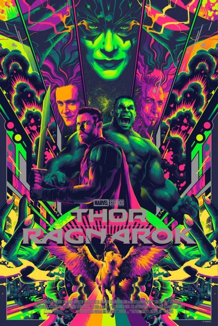 В Сеть просочились кислотные постеры к блокбастеру «Тор: Рагнарёк» от Mondo, а также порция концепт-артов с участием персонажей Криса Хемсворта, Тома Хиддлстона, Джеффа Голдблюма и других.