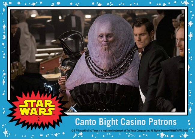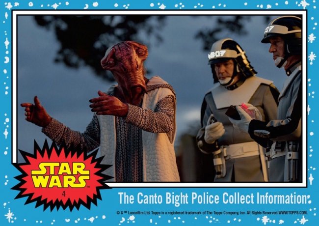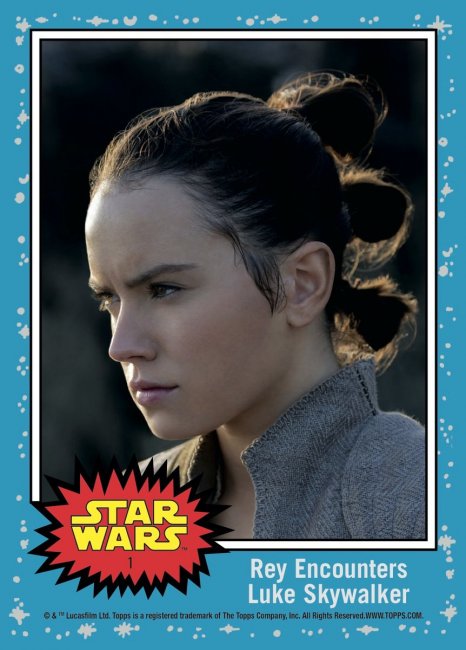 Несколько коллекционных карточек от Topps с кадрами из восьмого эпизода «Звёздных Войн». В «Последних джедаях» Рей (Дейзи Ридли) продолжит свое эпическое приключение вместе с Финном (Джон Бойега), По (Оскар Айзек) и Люком Скайуокером (Марк Хэмилл).