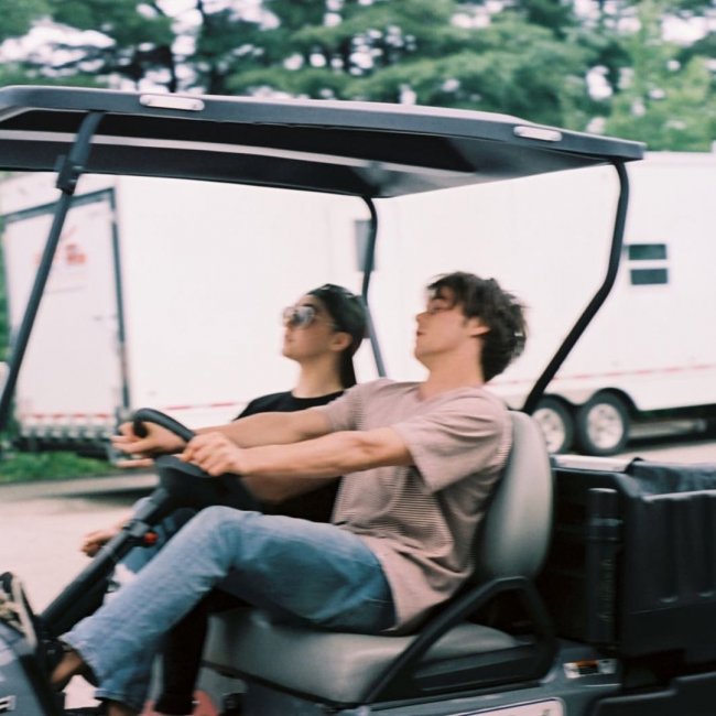 Мэйси Уильямс и Чарли Хитон в перерыве между съемками кинокомикса «Люди Икс: Новые мутанты». Также в актерском составе фантастической хоррор-драмы значатся Аня Тэйлор-Джой, Генри Зага и Блю Хант.