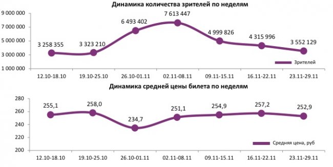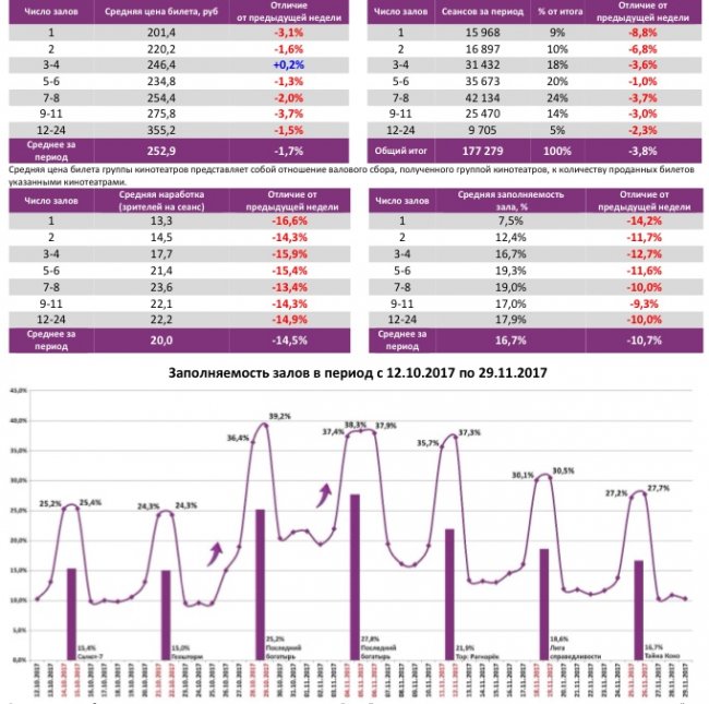 Отчет Фонда кино за 47 неделю 2017 года: Посещаемость продолжает снижаться