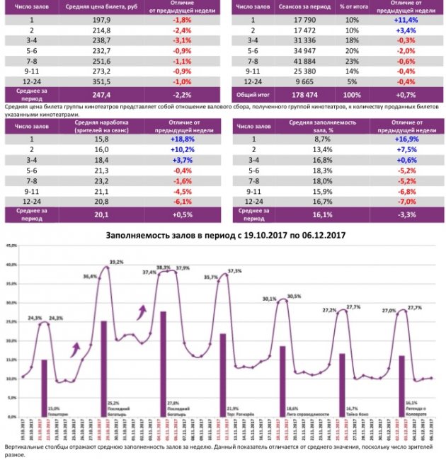 Заполняемость залов оказалась близкой к показателям прошлой недели.