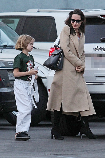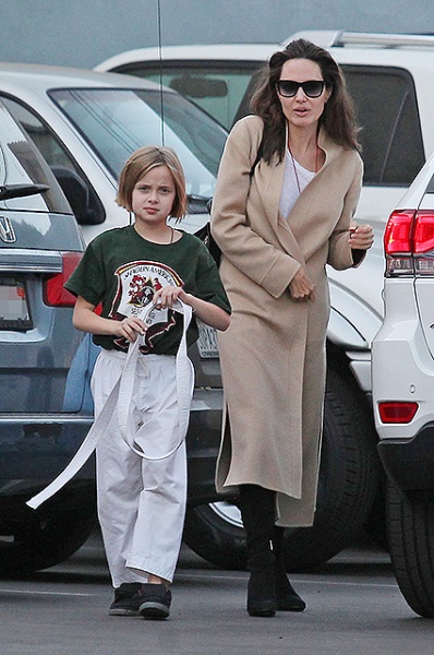 Папарацци подловили Джоли в центре Лос-Анджелеса, когда знаменитость провожала девятилетнюю дочь Вивьен на тренировку по карате.
