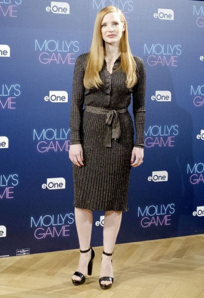 Джессика Честейн продолжает путешествовать по миру в рамках пресс-тура в поддержку своего нового фильма "Игра Молли"; на днях премьера покерной драмы состоялась в Мадриде.