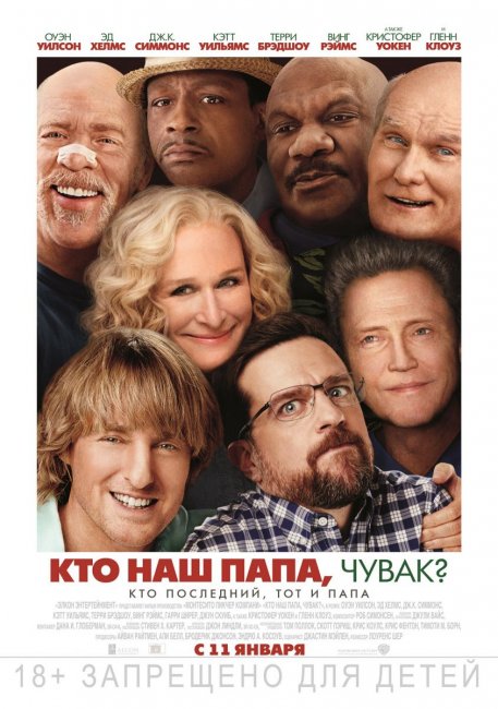 Локализованный постер отвязной R-рейтинговой комедии «Кто наш папа, чувак?», где играющие братьев Оуэн Уилсон и Эд Хелмс отправляются на поиски своего настоящего отца, которого они никогда не видели, однако претендентов оказывается сразу несколько.