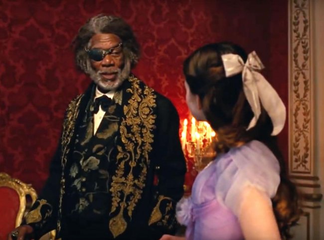 Самая яркая звезда трейлера - фея Драже. Кира Найтли практически неузнаваема в эксцентричном платье со множеством оборок и пайеток, парике с с розовыми локонами и макияжем в бледно-сливовых тонах. Хелен Миррен тоже не сразу узнаешь в образе агрессивной героини - Матери Джинджер. Лицо в шрамах, волосы оттенка меди, костюм, которому бы позавидовал сам Джек Воробей, и меч в руке - с такой леди лучше не вступать в открытое противостояние.