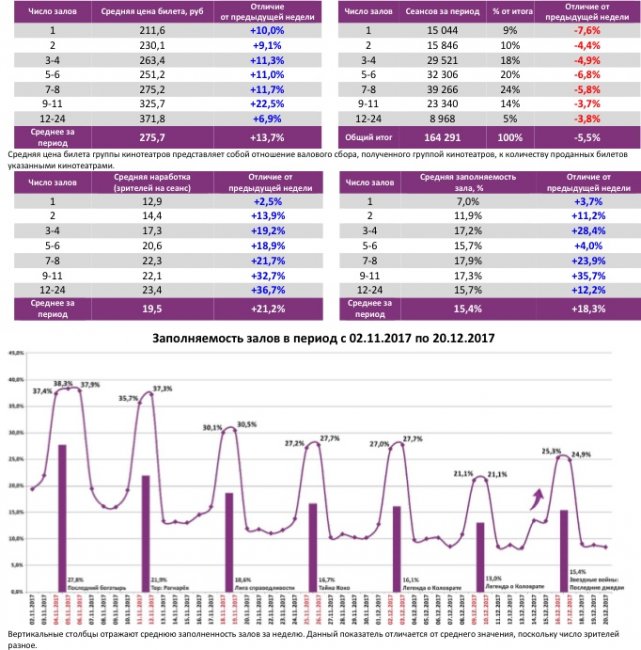 Средняя заполняемость кинозалов по стране была едва выше 15%.