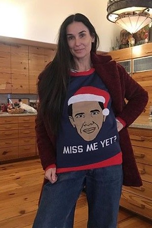 Деми Мур позирует в свитере с изображением Барака Обамы. Актриса более 10 лет прожила в браке с Брюсом Уиллисом.