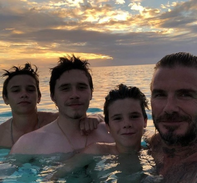 К слову, видимо из-за внезапной самостоятельности старшего сына, Виктория и Дэвид в этом году особенно трепетно отнесли к семейному путешествию. В личном микроблоге звезд можно увидеть множество снимков, на которых позируют практически все члены семьи. Одним из самых популярных фото за последние дни стал кадр, на котором Дэвид Бекхэм позирует с сыновьями Бруклином, Ромео и Крузом. Красавцы, что сказать!