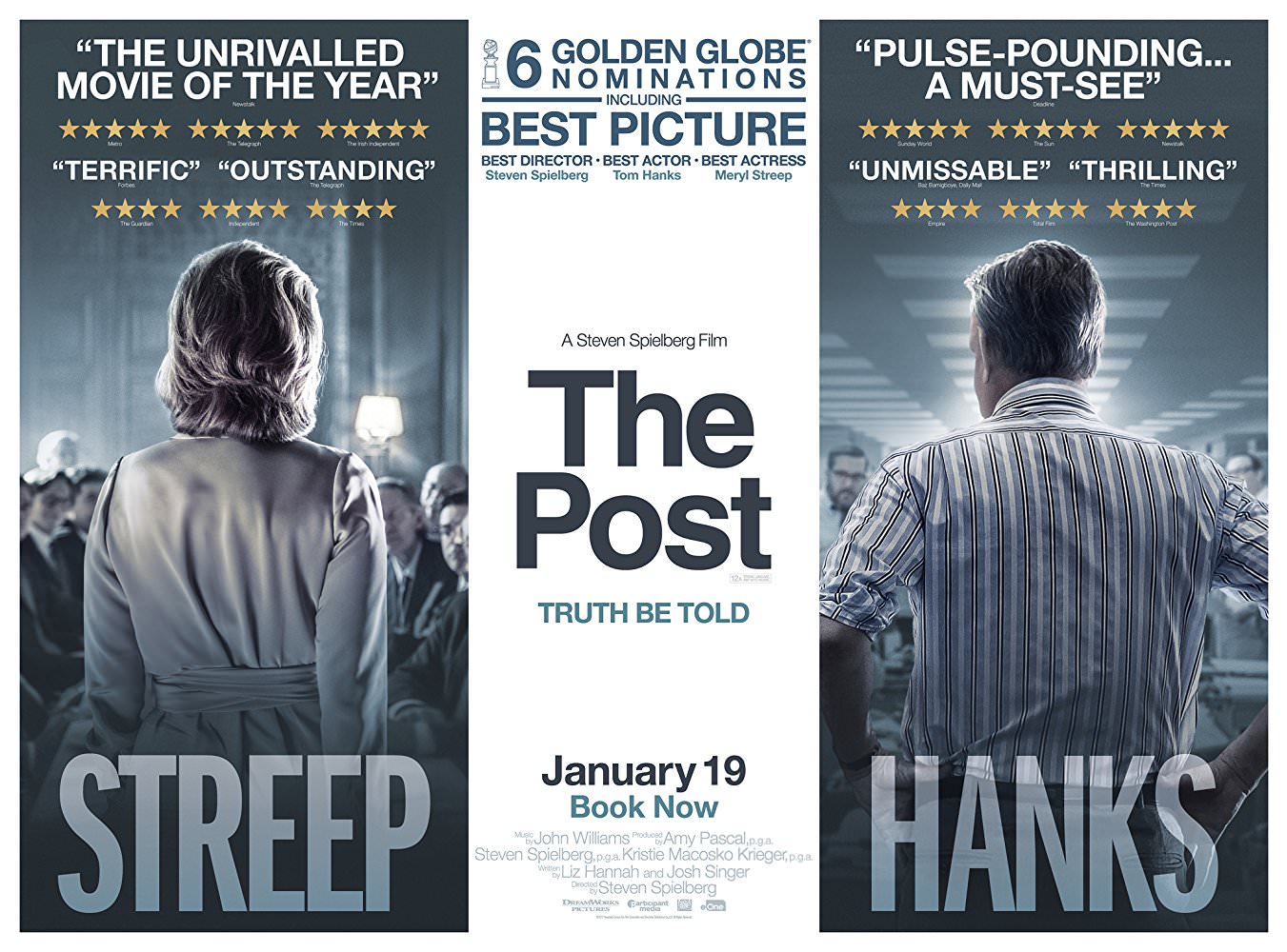 Опубликован свежий плакат драмы «Секретное досье» от режиссёра Стивена Спилберга. Российская премьера ленты с Томом Хэнксом и Мэрил Стрип в главных ролях запланирована на 22 февраля.