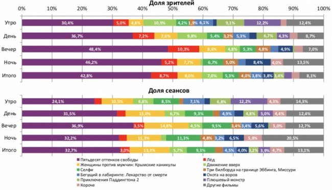 «Пятьдесят оттенков свободы» в семи лучших кинотеатрах страны показывали сборы от 36% до 62%.