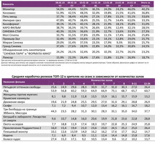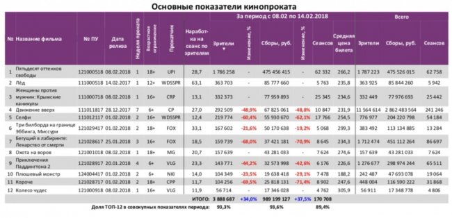 Отчет Фонда кино за 6 неделю 2018 года: «Пятьдесят оттенков свободы» на «Льду»