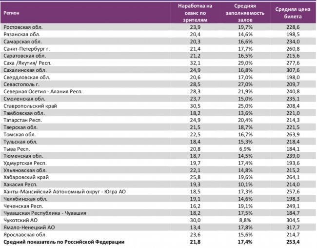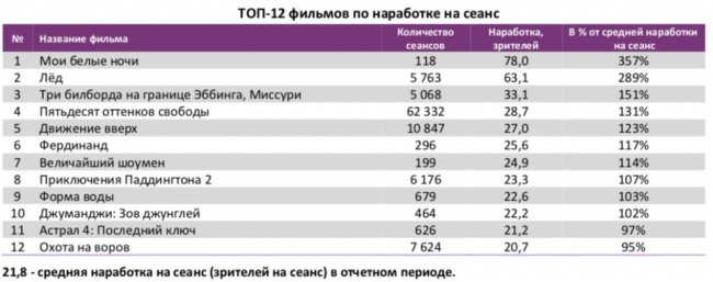 По наработке на сеанс лидером стала якутская романтическая комедия «Мои белые ночи».