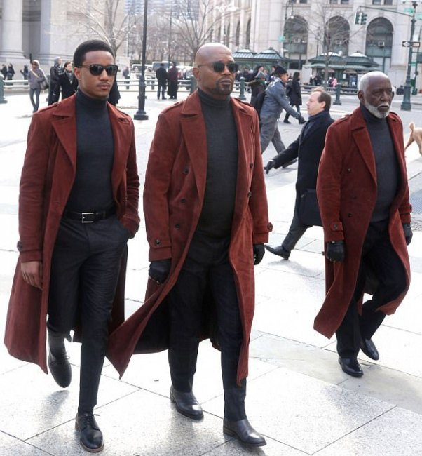 Джесси Ашер, Сэмюэл Л. Джексон и Ричард Раундтри на фото со съёмок перезапуска «Шафта», проходящих в Нью-Йорке. Режиссёрское кресло проекта занимает Тим Стори (дилогия «Фантастическая четверка»).