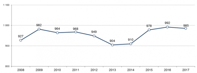 Посещение кинотеатров в ЕС за 2008-2017 годы