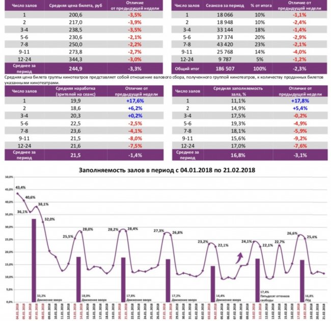 Отчет Фонда кино за 7 неделю 2018 года: Кинотеатры превратились в ледовые площадки