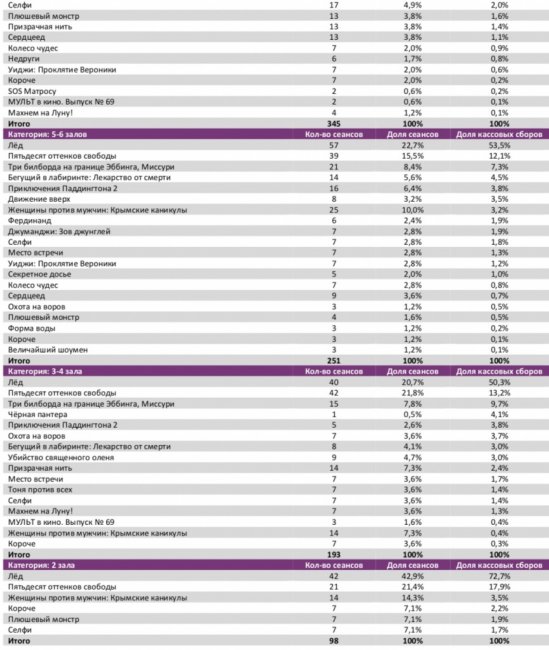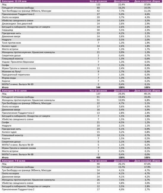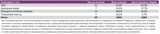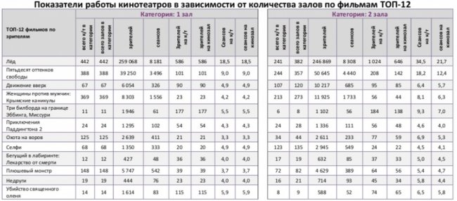 «Лёд» в семи лучших кинотеатрах страны показывал сборы от 38% до 73% от общего бокс-офиса.