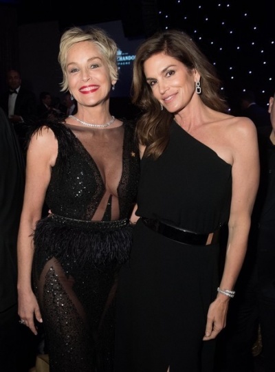 Шэрон Стоун и Синди Кроуфорд на ужине Forbes Travel Guide