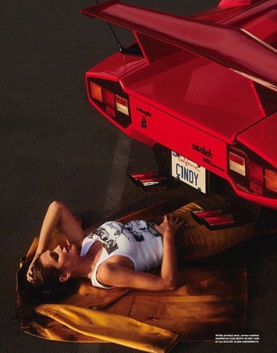 На этот раз 52-летняя модель повторила ретро-образы, примерив стильные образы Роберто Кавалли в красном суперкаре Lamborghini Countach.