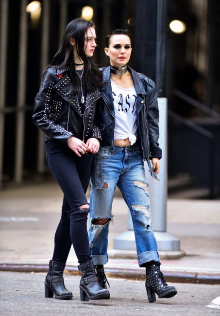 Рэффи Кэссиди («Убийство священного оленя») и Натали Портман в образе певицы Селесты на свежих фото со съёмочной площадки музыкальной драмы «Голос света». В каст также входят Джуд Лоу и Стэйси Мартин («Нимфоманка»).