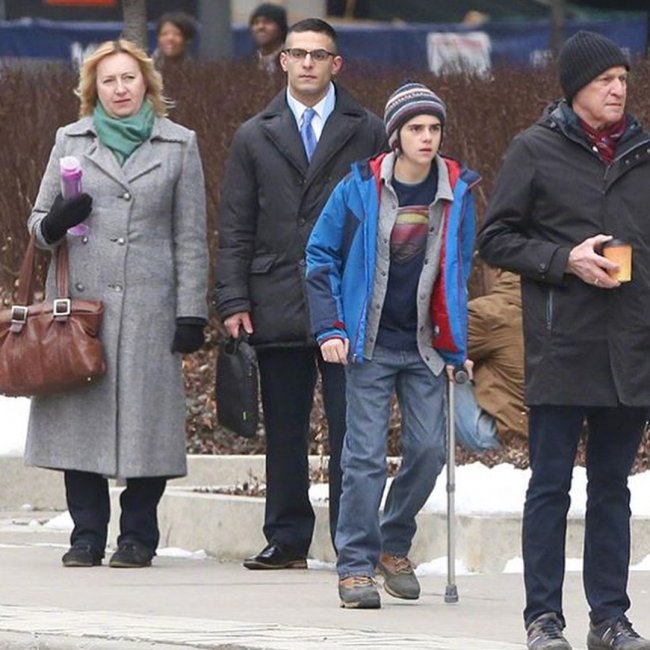 Марк Стронг в образе доктора Сиваны и Джек Дилан Грейзер («Оно») на фото со съёмочной площадки экшена «Шазам!» из киновселенной DC. Режиссёрское кресло занимает Дэвид Ф. Сандберг («И гаснет свет…», «Проклятие Аннабель: Зарождение зла»).